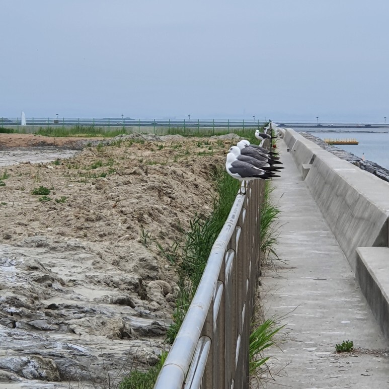 갈매기가 줄지어서 앉아 있더라고요 ㅋㅋ