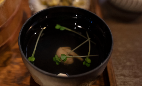 3. 와사비, 파를 넣고 그위에 육수를 넣어서 먹는다.