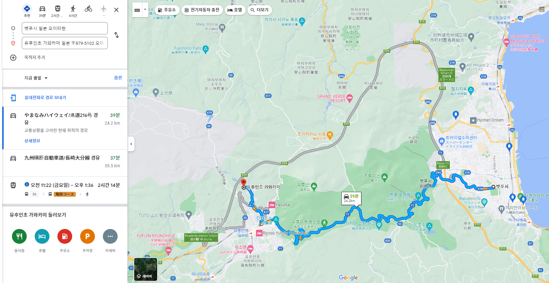 제가 느낀건 벳부는 온천 리조트 느낌이 강하여 리조트에서 놀고 싶다면 벳부를 가는 것을 추천드리고 그게 아닌 료칸을 즐기시려면 유후인이 더 좋다는 생각이 들었어요. 물론 벳부에도 료칸이 있습니다. 하지만 벳부는 현대화가 된 동네이고